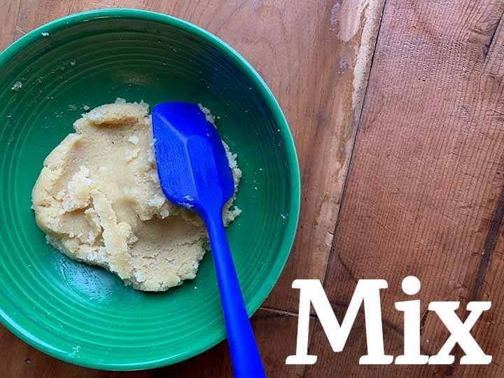 2. In a medium sized bowl, mix together almond flour, salt and melted butter. Stir in beaten egg and mix well to combine.